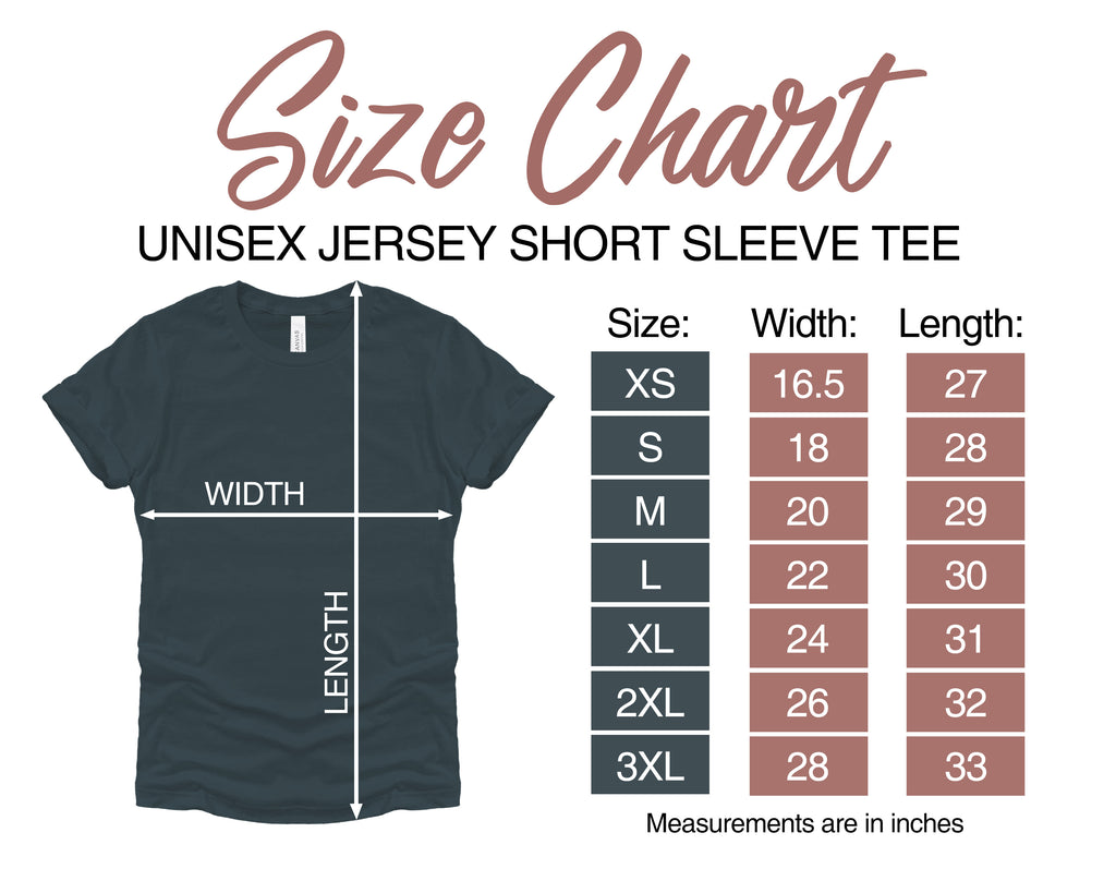 Finding the right size can be hard, so let's make it simple! Our shirts are true to size, but if you have any issues with any of your T-shirts, we offer easy returns and exchanges too!