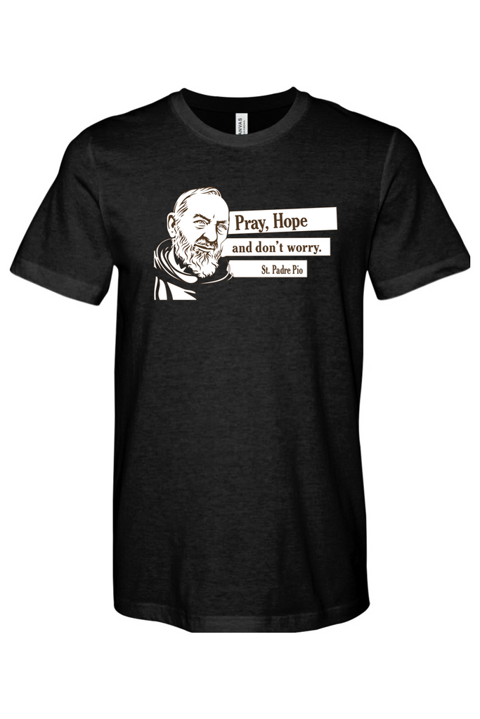 Our favorite quote from him is: "Pray, Hope, and Don't Worry" and is an awesome saintly motto to live by! St. Pio always relied on the power of prayer, hoped with out ceasing, and placed his confidence in Jesus!